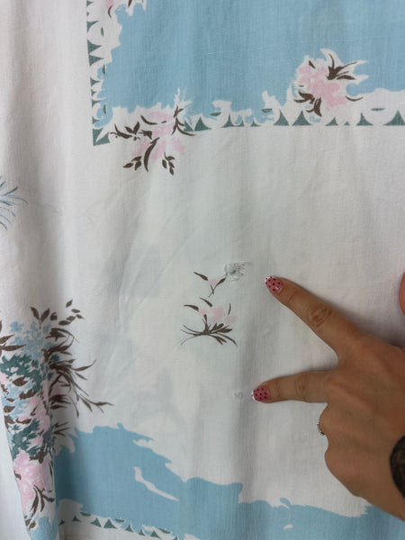 These are made from vintage/antique tea towels and tablecloths. Please expect small holes/paint splatter, discolorations etc. Reclaim and Rethread focuses on using secondhand materials and with that comes imperfections (which we love). Each material tells a story of the many lives it has lived. What will you add to the tale?