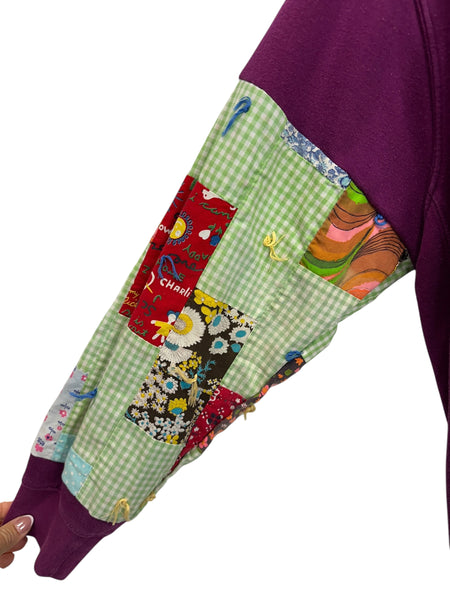 I use scraps from other pieces I've made to create the designs on these sweatshirts.